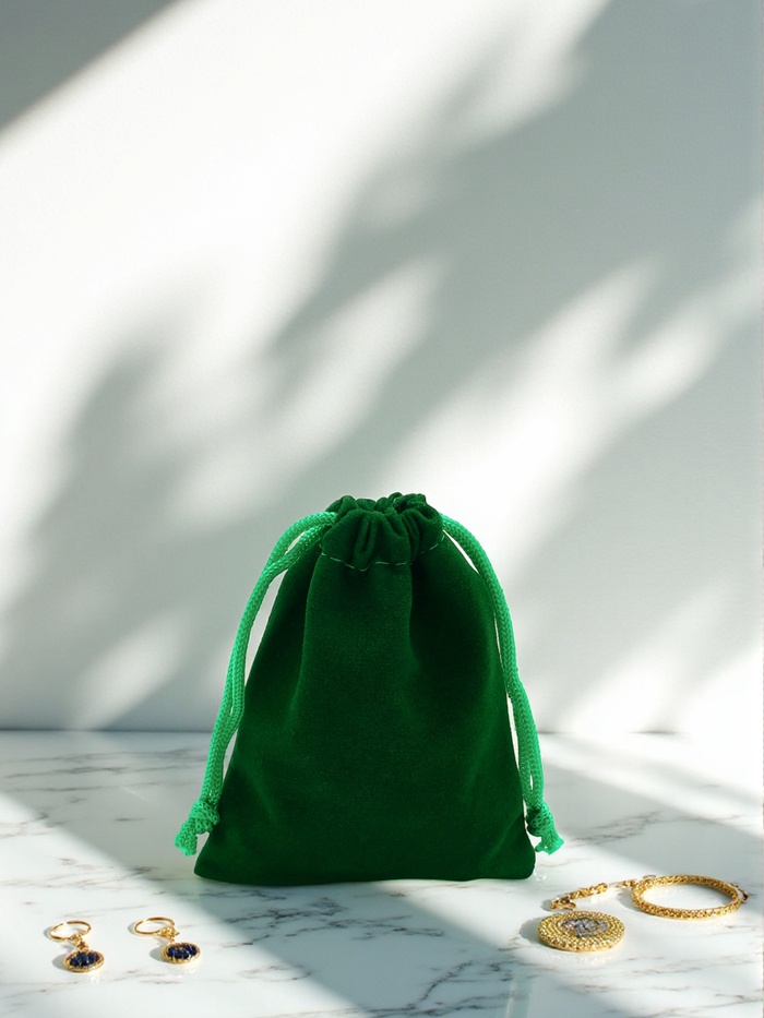 Зеленый бархатный мешочек размером примерно 7×9 см — это универсальный подарок-упаковка, идеально подходящая для оформления небольших сувениров, украшений или подарков. Его однотонный цвет и мягкая текстура делают его подходящим для различных торжеств и мероприятий, включая 8 Марта и другие праздники.