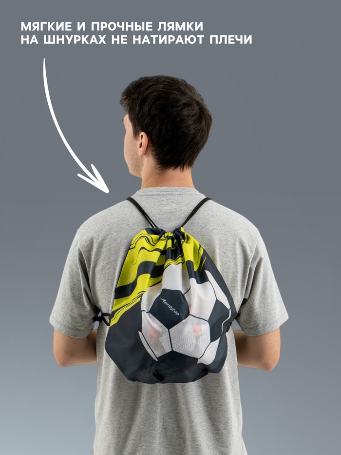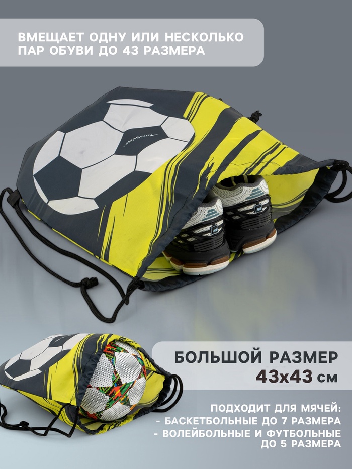Мешок предназначен для хранения и транспортировки обуви или спортивного мяча.