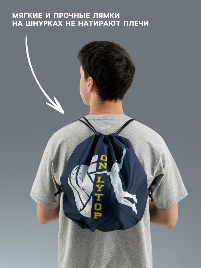 Он состоит из одного отделения и закрывается стягиванием шнурков. Лямки позволяют носить его в руках или на плече, а компактный размер обеспечивает лёгкость в переноске.