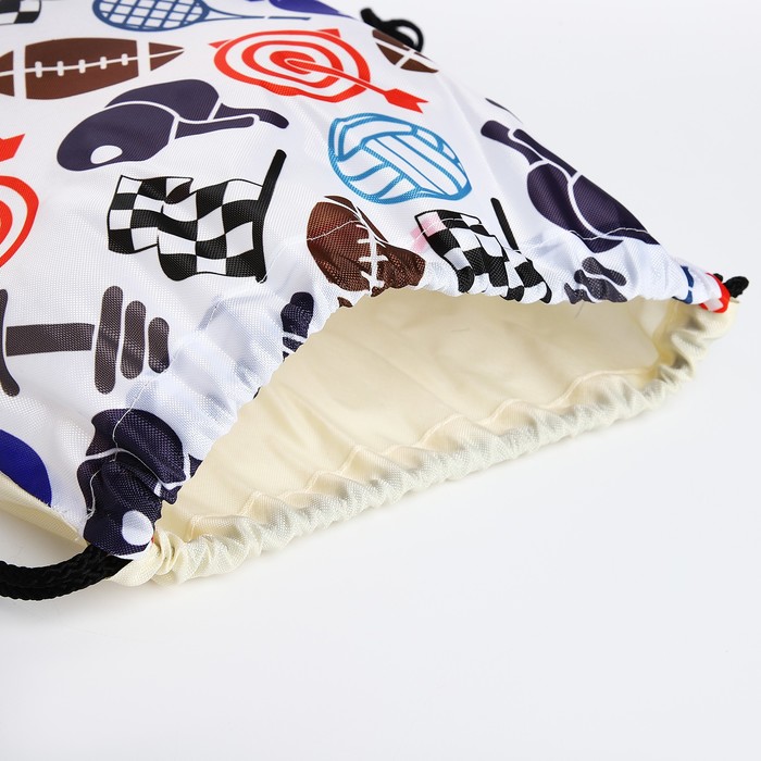 Этот спортивный мешок для обуви решает проблему хранения и переноски сменной обуви. Белый фон с ярким принтом делает его заметным среди других вещей, а шнуровка-кулиска плотно закрывает верх. Водоотталкивающая пропитка защищает содержимое сумки от влаги и пыли.