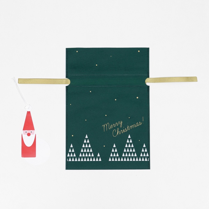 - Лесной новогодний дизайн: Рисунок с зимними мотивами создаёт праздничное настроение. Мешок не требует дополнений — просто положите внутрь подарок и затяните шнурок.