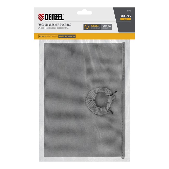 Мешок тканевый многоразовый 28212, для пылесоса DENZEL SVC15, LVC15, 150 х 150 х 10 мм