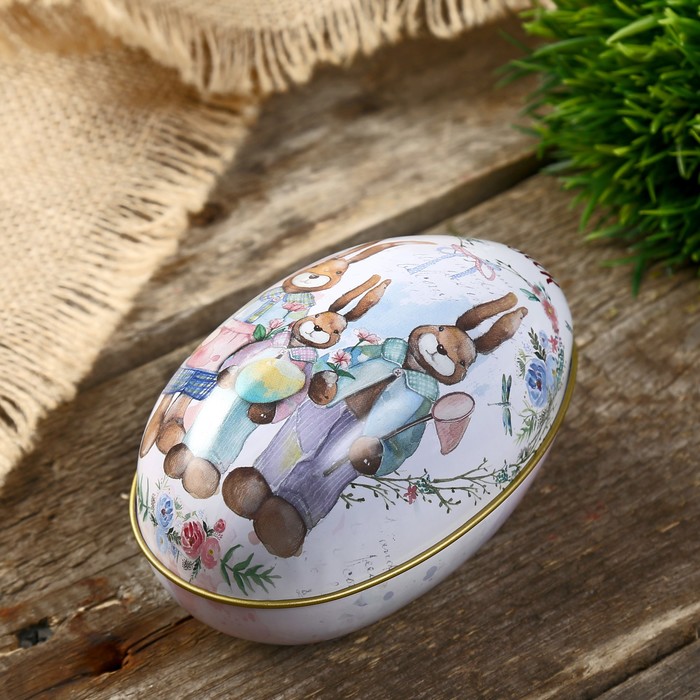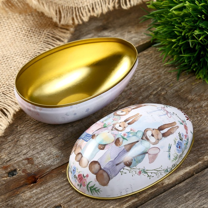 Металлическая шкатулка-яйцо «Семья кроликов», для украшений, хранения мелочи, 11×6.5×7 см