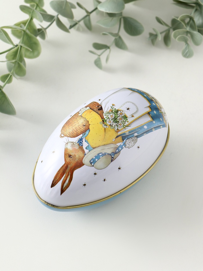 Металлическая шкатулка-яйцо «Зайка с ульем и ромашками», для украшений, хранения мелочи, 6×6.7×11 см