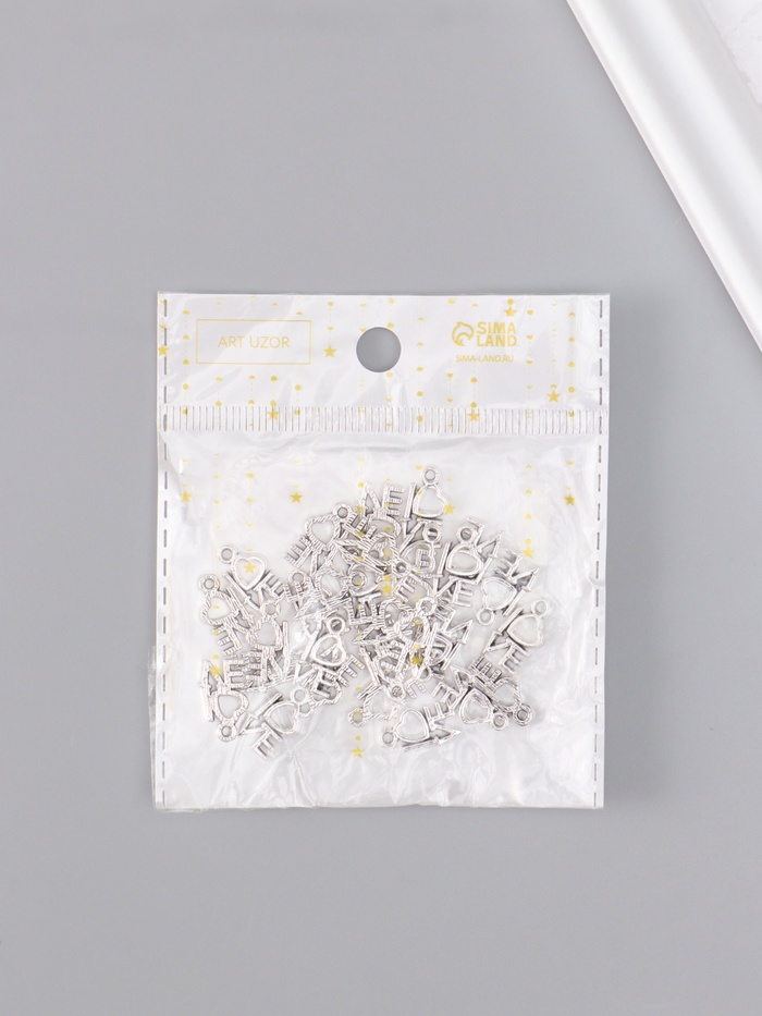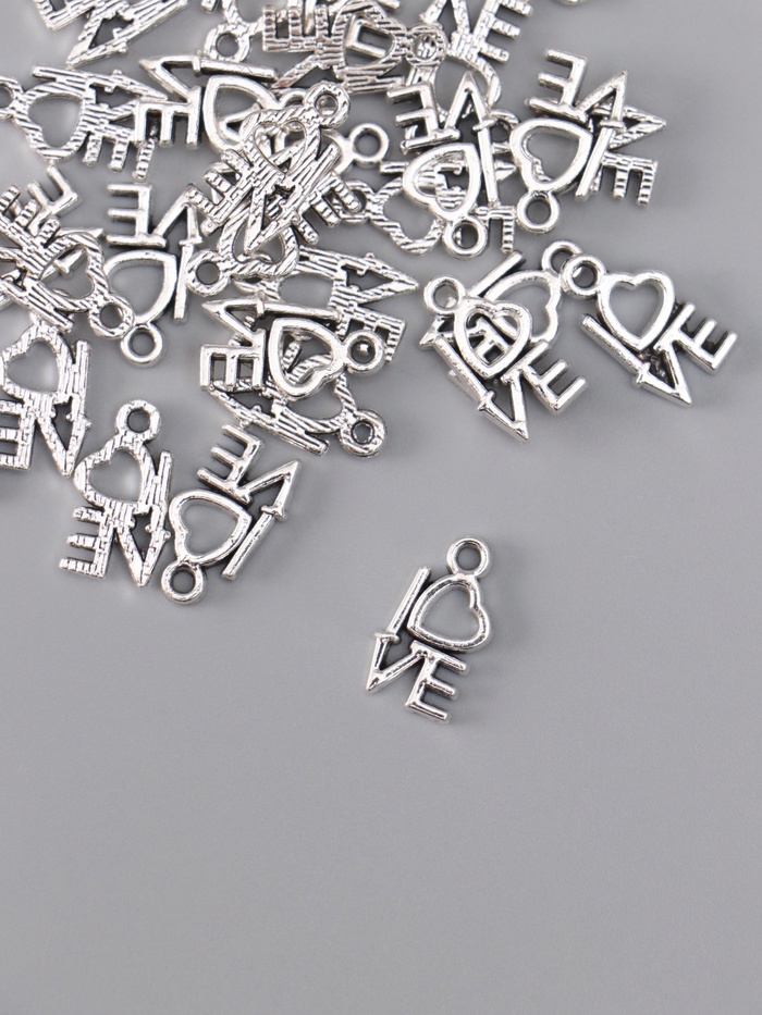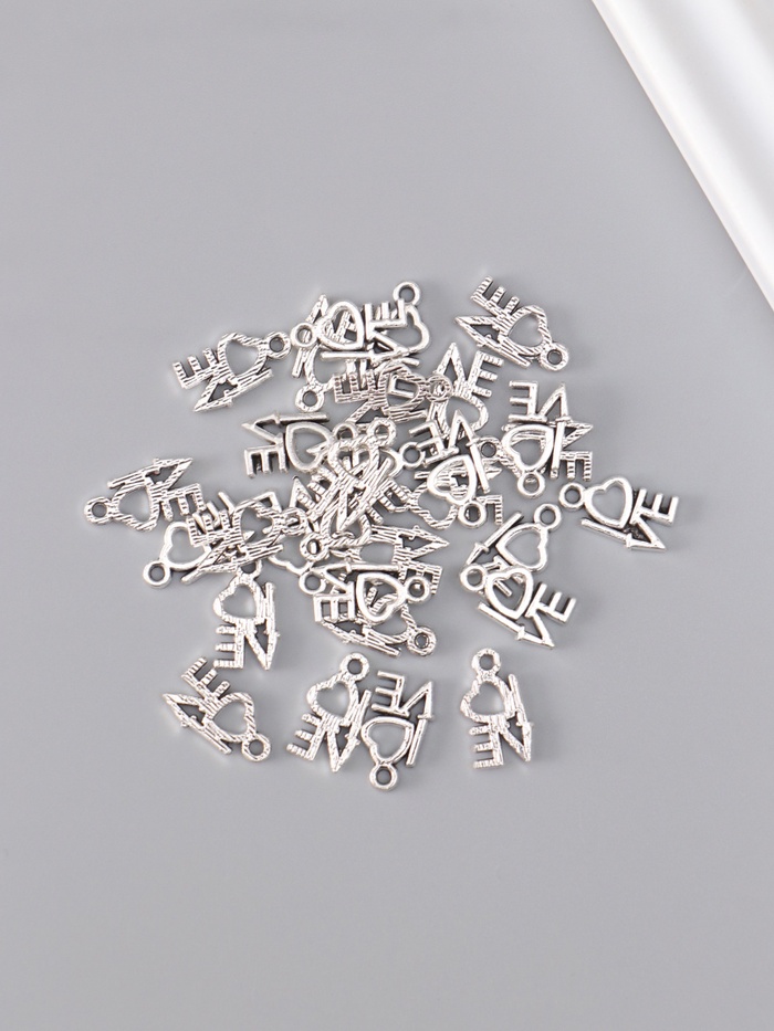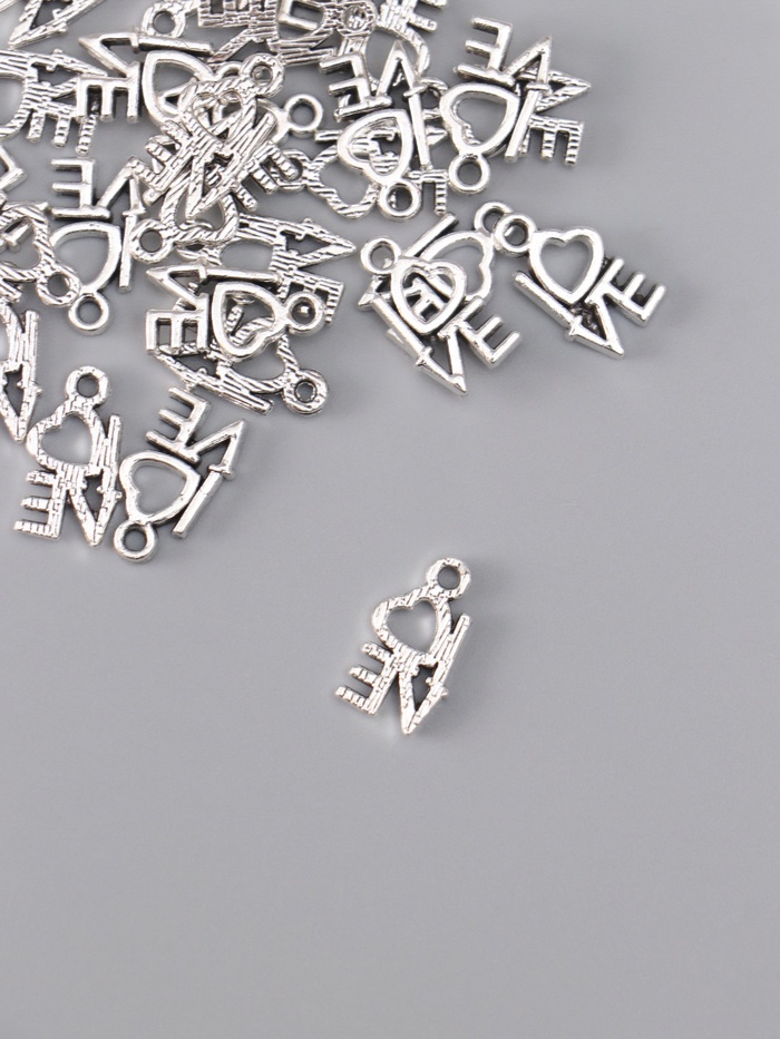 Металлический элемент декоративная подвеска «Арт Узор. Love с сердечком», серебро, набор 30 шт., 1.4×0.8 см