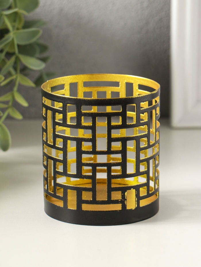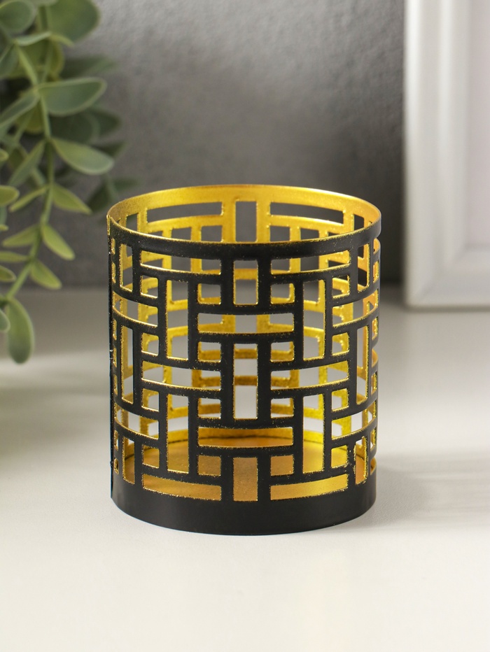 Металлический подсвечник «Цилиндр геометрия», 7.5×7.5×8 см, чёрный с золотом