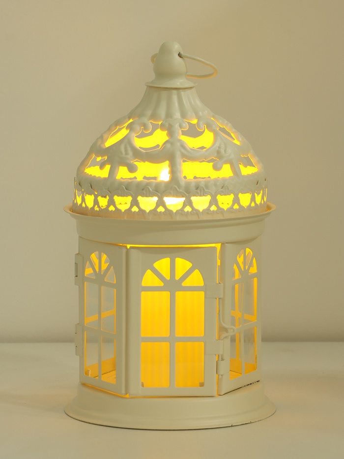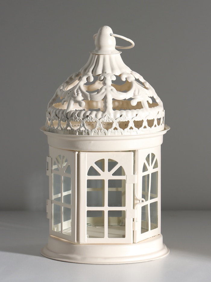 Металлический подсвечник-фонарь на 1 свечу «Ажурная беседка», белый, 12.5×12.5×21 см