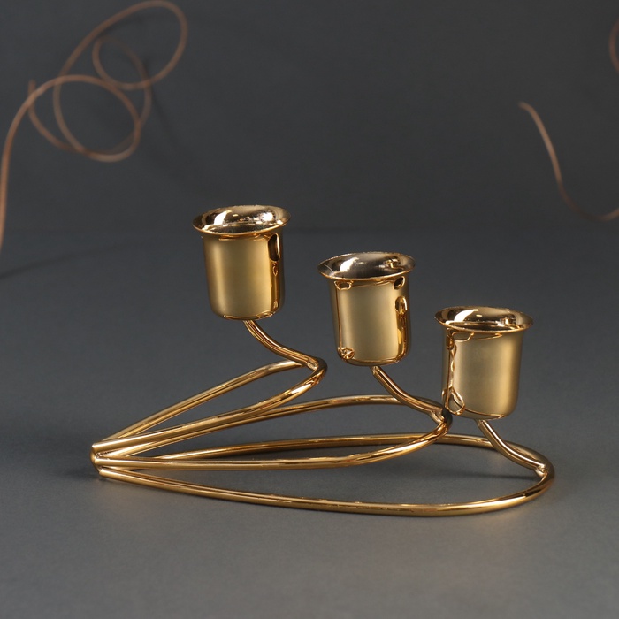 Металлический подсвечник на 3 свечи «Капли», золото, 14×8×8 см