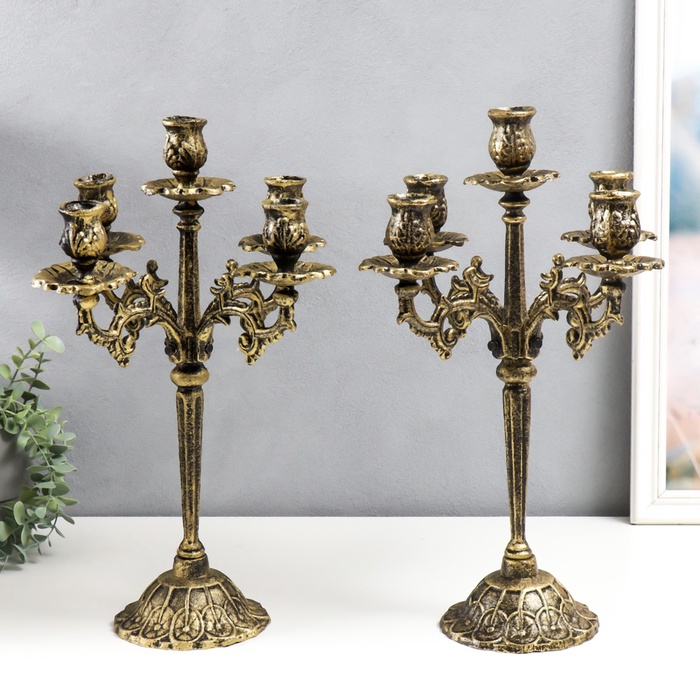 Металлический подсвечник на 5 свечей «Канделябр королевский», чугун, золотая патина 43×29×29 см