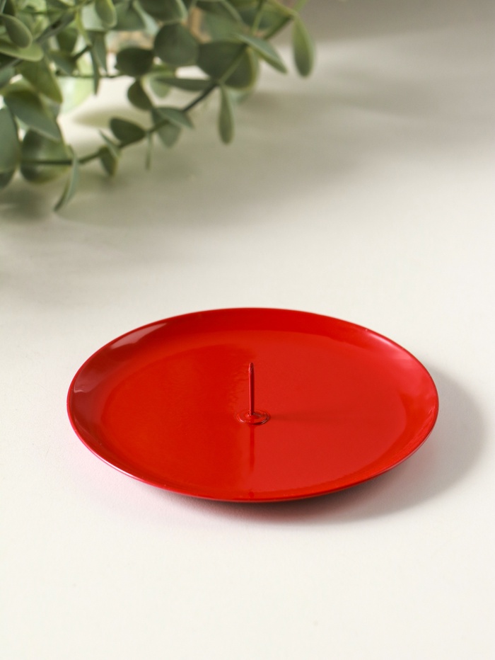 Металлический подсвечник плоский «Чашка» 10 см, красный