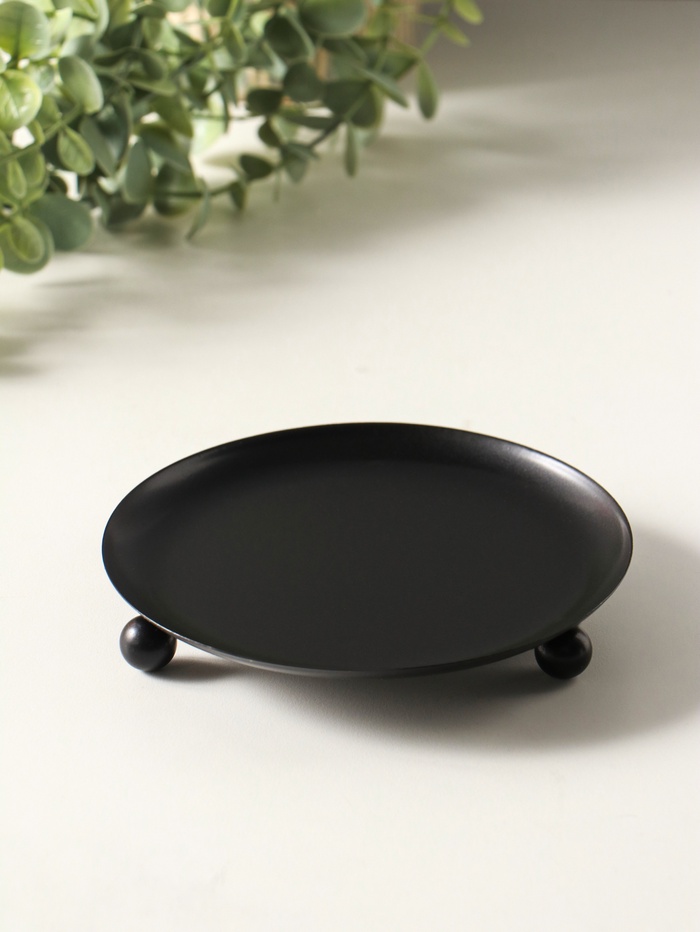 Металлический подсвечник плоский «Чашка на шариках», 14 см, чёрный