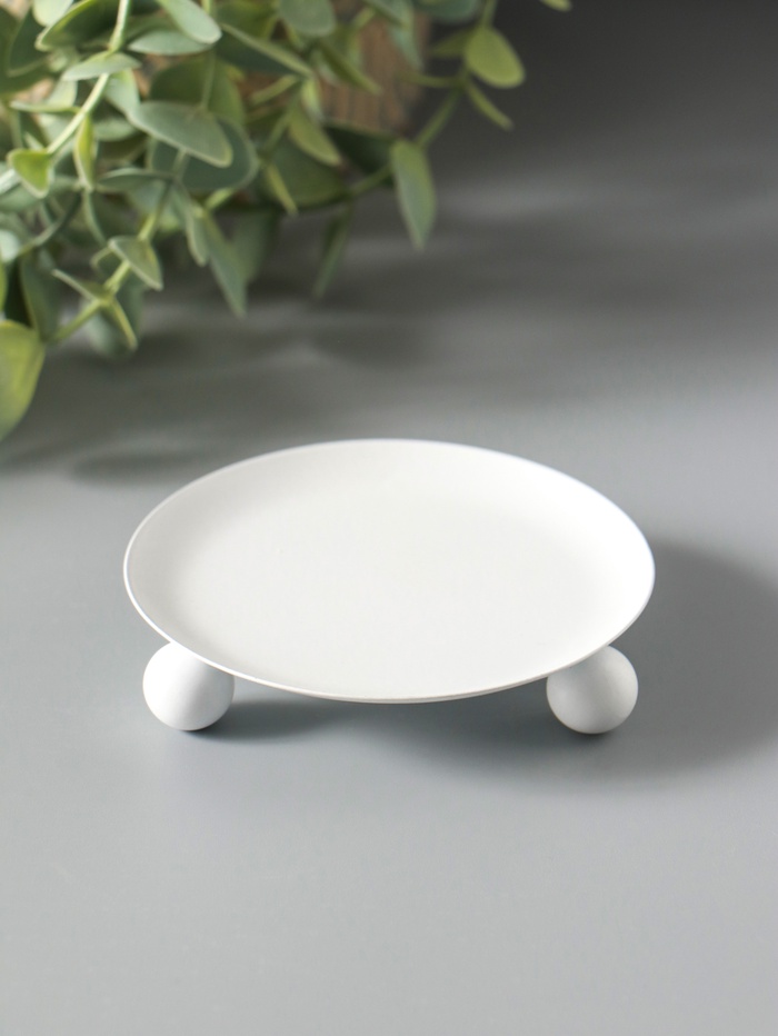 Металлический подсвечник плоский «Чашка на шариках», 14 см, белый