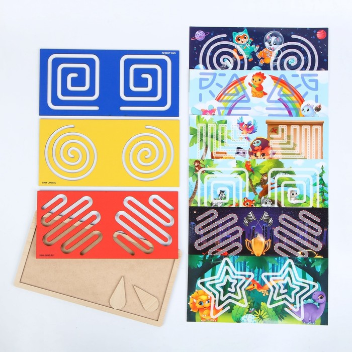 Межполушарная доска — это поле с углублением в виде спирали или лабиринта. Задача малыша — с помощью специальных фишек одновременно двумя руками пройти маршрут из одного конца в другой.