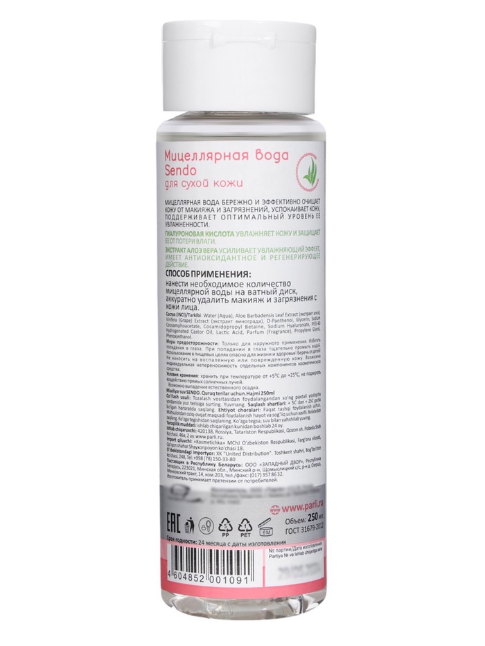 Мицеллярная вода Sendo для сухой кожи, 250 мл — это универсальное средство для бережного и эффективного очищения, специально разработанное для сухой и чувствительной кожи, включая зону вокруг глаз.