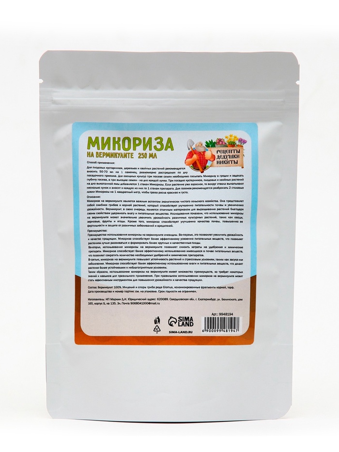Микориза на вермикулите «Рецепты Дедушки Никиты», 250 мл