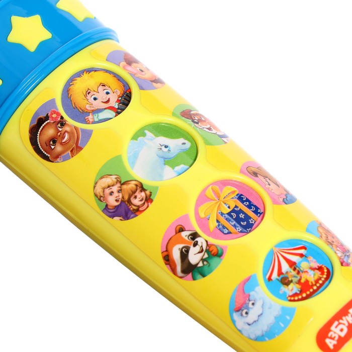 Если ваш ребёнок обожает петь и мечтает стать настоящим артистом, то он с радостью будет петь с микрофоном «Караоке». Игрушка воспроизводит 14 песен из любимых мультиков.