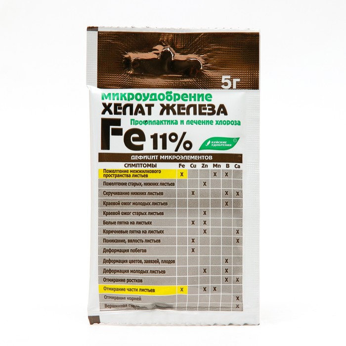 Микроудобрение Хелат железа, 5 г. Микроудобрение содержит железо в хелатной форме. Применяется для корневых и некорневых подкормок в открытом грунте и гидропонных теплицах. Предназначено для профилактики и лечения хлороза. Железо — активный компонент, участвующий в жизнедеятельности растений. Оно способствует обмену веществ, а также является одним из компонентов ферментов, которые обеспечивают дыхание и образование хлорофилла.