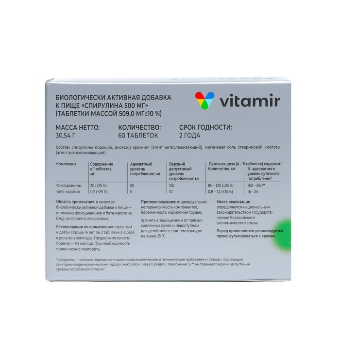 Рекомендации по применению: взрослым и детям старше 14 лет по 2 таблетки 2 - 3 раза в день во время еды. Продолжительность приема — 1 - 2 месяца. При необходимости приём можно повторить.