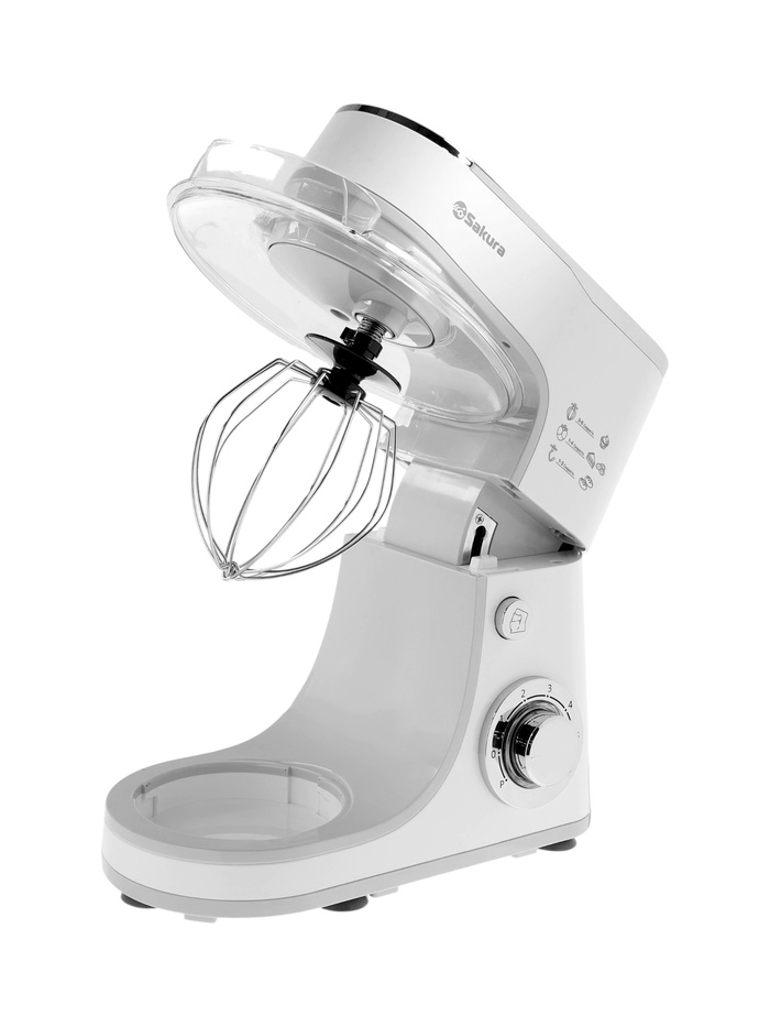 Миксер планетарный Sakura SA-6332W, 1300Вт, 6 скоростей, чаша 5л, 3 насадки, белый