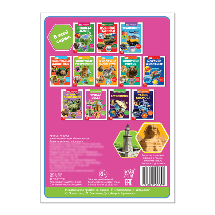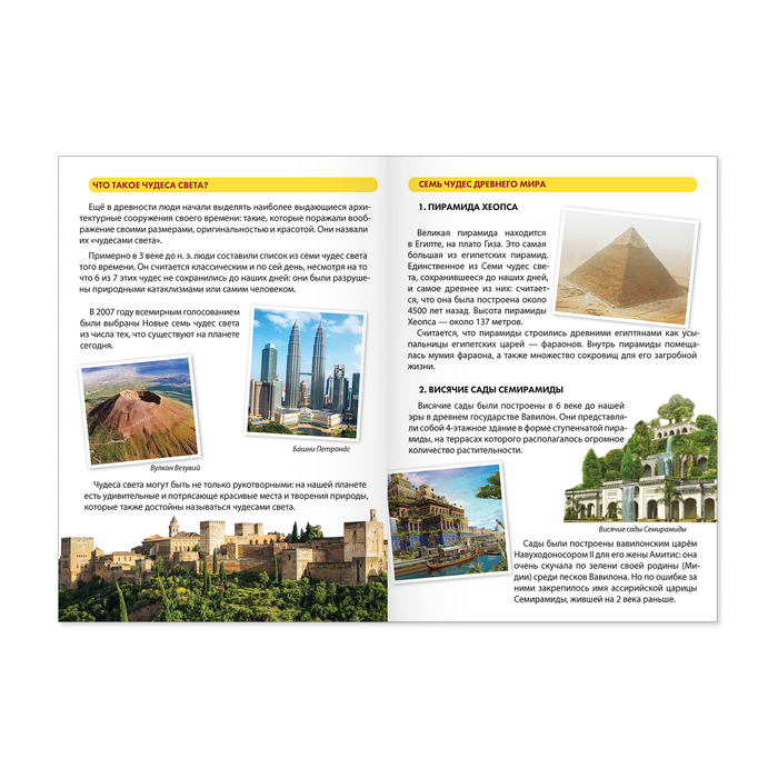 Мини-энциклопедия «Чудеса света» с викториной — лучший подарок для маленького почемучки! С ней он отправится в увлекательное путешествие по разным странам, познакомится с известными достопримечательностями, архитектурными сооружениями.
