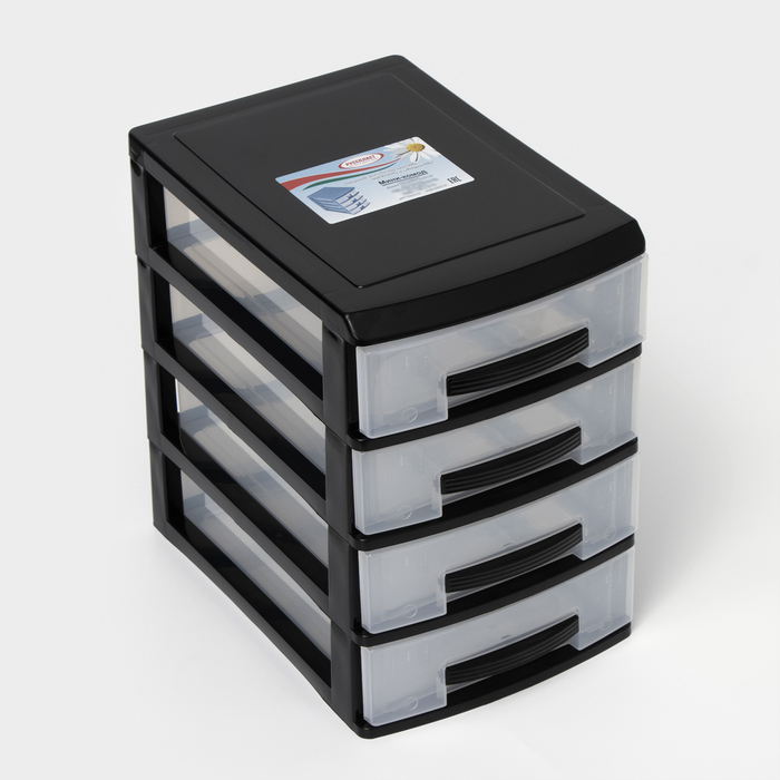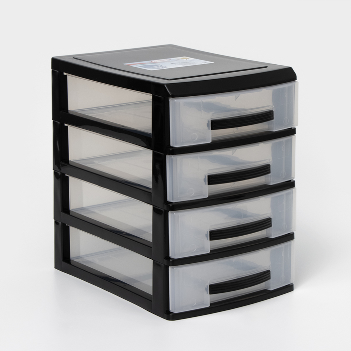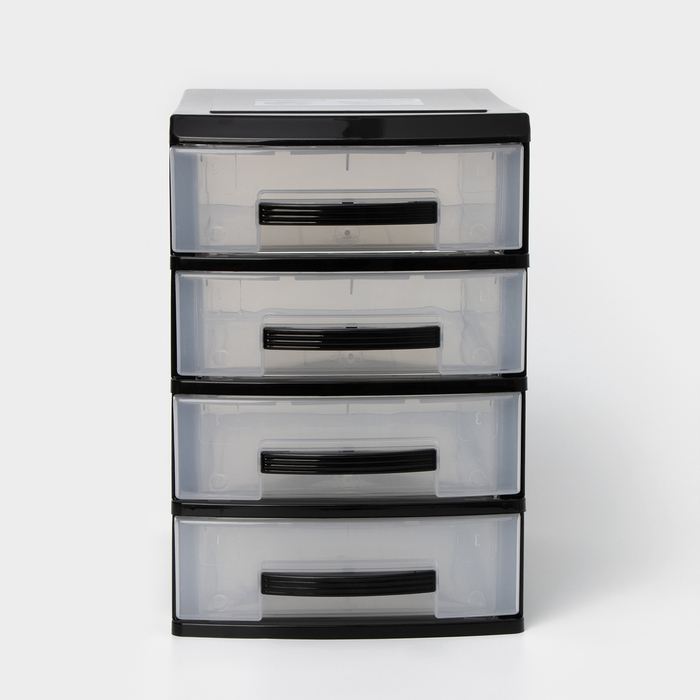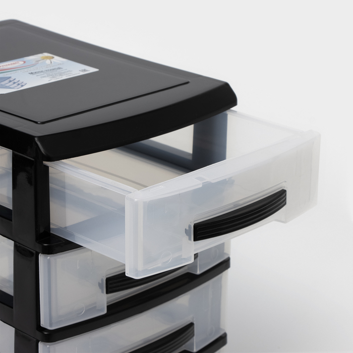 Пластиковый предмет мебели предназначен для хранения мелочей, принадлежностей для шитья, творчества и других аксессуаров. Изделие оснащено выдвижными ящиками с ручками.