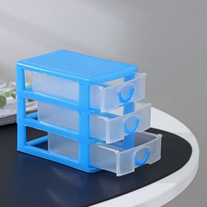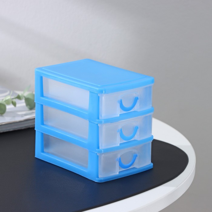 Пластиковый предмет мебели предназначен для хранения мелочей, принадлежностей для шитья, творчества и других аксессуаров. Изделие оснащено выдвижными ящиками с ручками.
