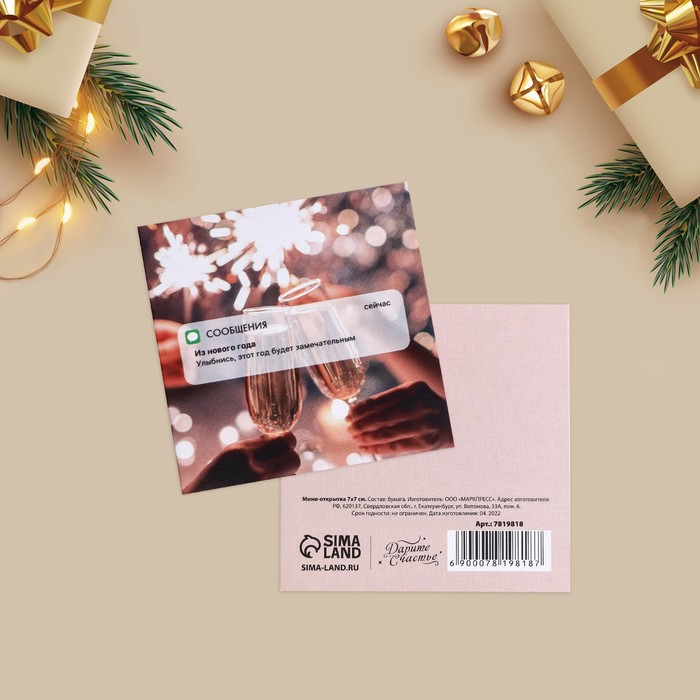 Мини-открытка «Новогоднее послание», 7 х 7 см