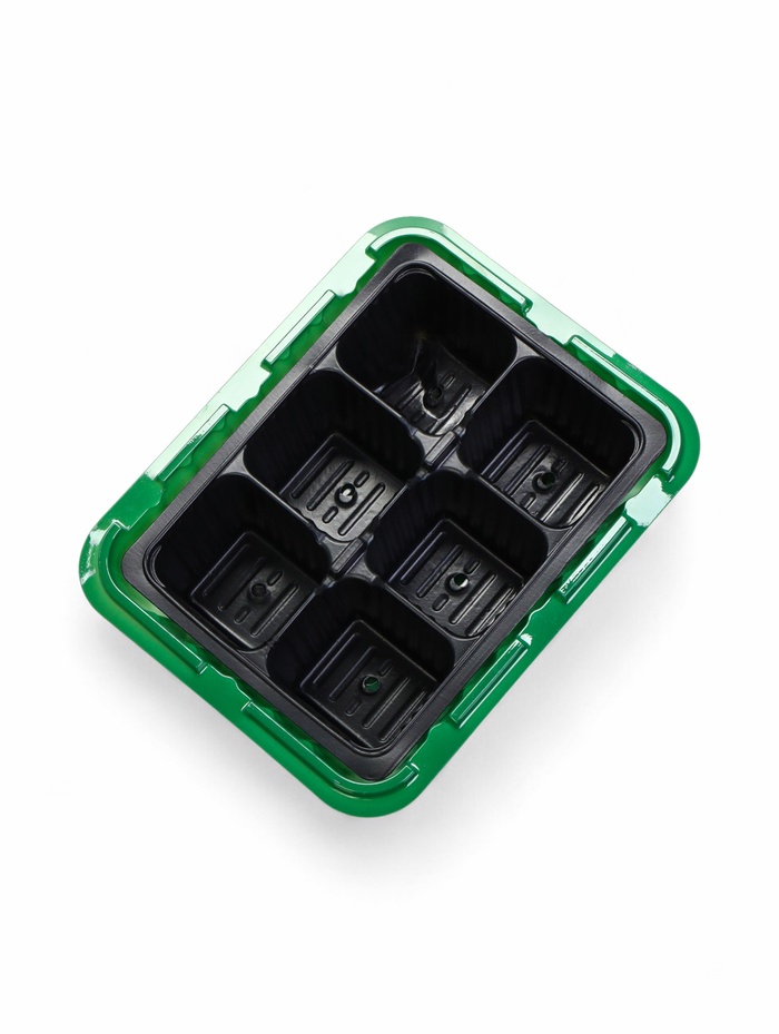 - Правильный старт для корней: Каждая из шести ячеек оборудована дренажными отверстиями. Избыток воды уходит, что предотвращает закисание почвы и защищает корневую систему от загнивания.
