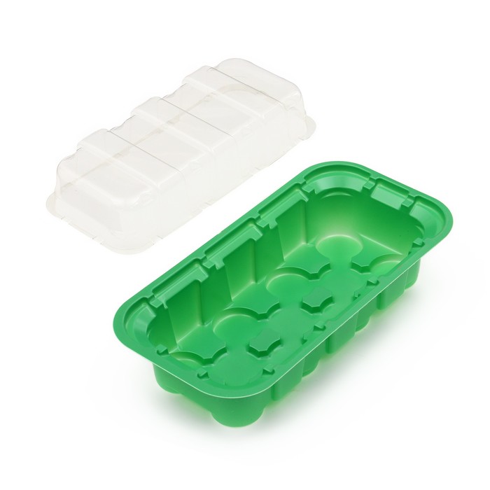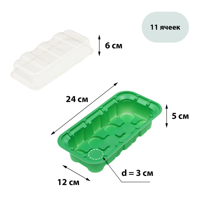 Мини-парник предназначен для более быстрого выращивания рассады. В основании есть специальные выемки для торфяных или кокосовых таблеток.