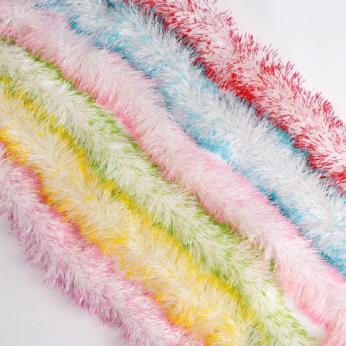 Эта мишура добавляет дереву и комнате ощущение зимнего света и семейного тепла. Цветной ритм и мягкие формы работают вместе, чтобы сделать праздник частью вашей личной истории. Используйте её как основу убранства или фоновое дополнение — одинаково хорошо усиливает атмосферу Нового года и предпраздничное ожидание.
