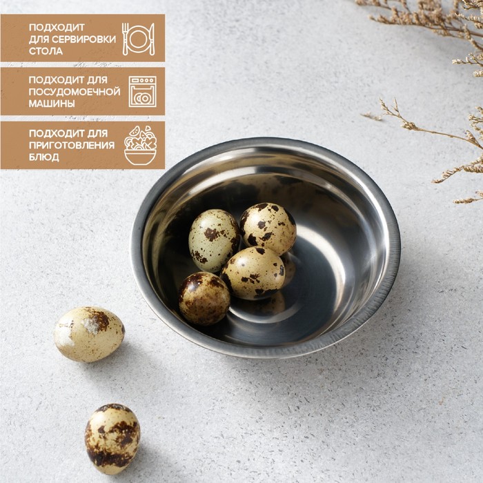 Миска из качественной нержавеющей стали станет незаменимой посудой на вашей кухне. Это универсальная посуда, её можно использовать для салатов, для приготовления пищи. Миску можно брать с собой на природу и не бояться, что она разобьётся.
