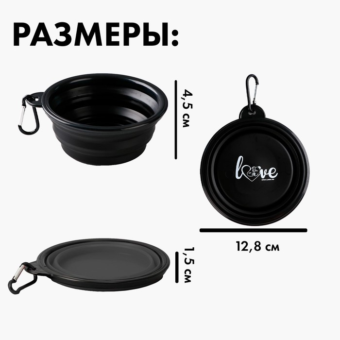 Лёгкую складную миску из силикона удобно брать с собой в поездку, поход, в отпуск или на дачу. В комплект входит карабин для крепления к одежде, сумке или рюкзаку.