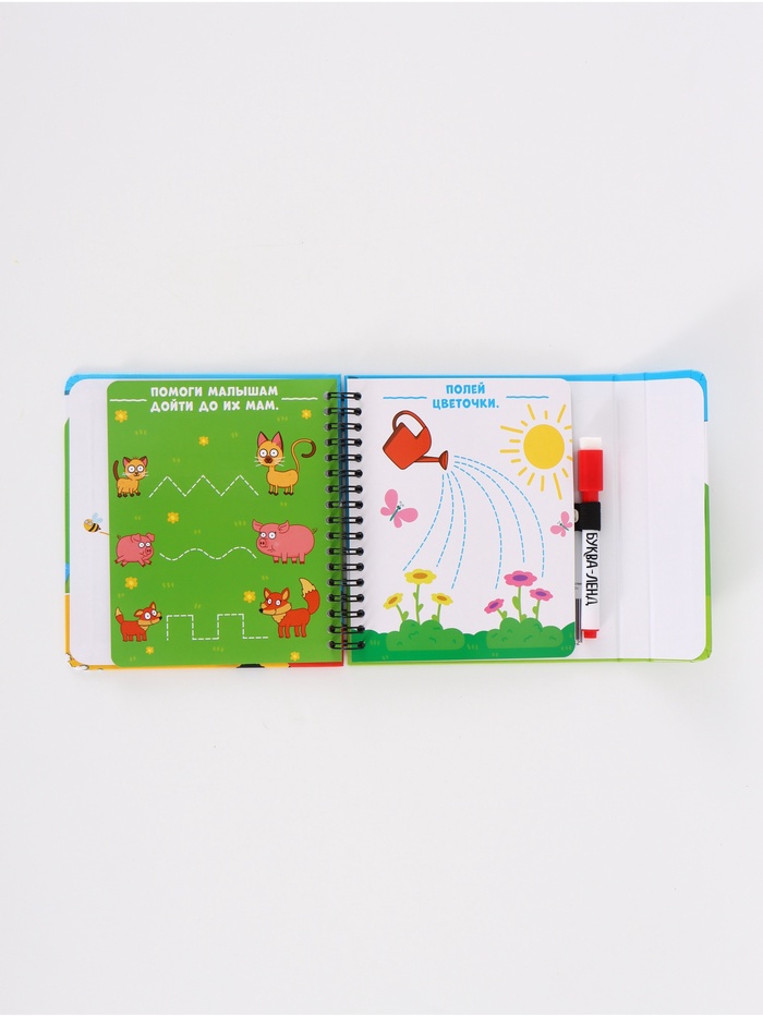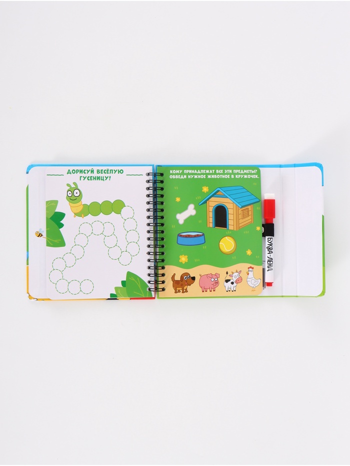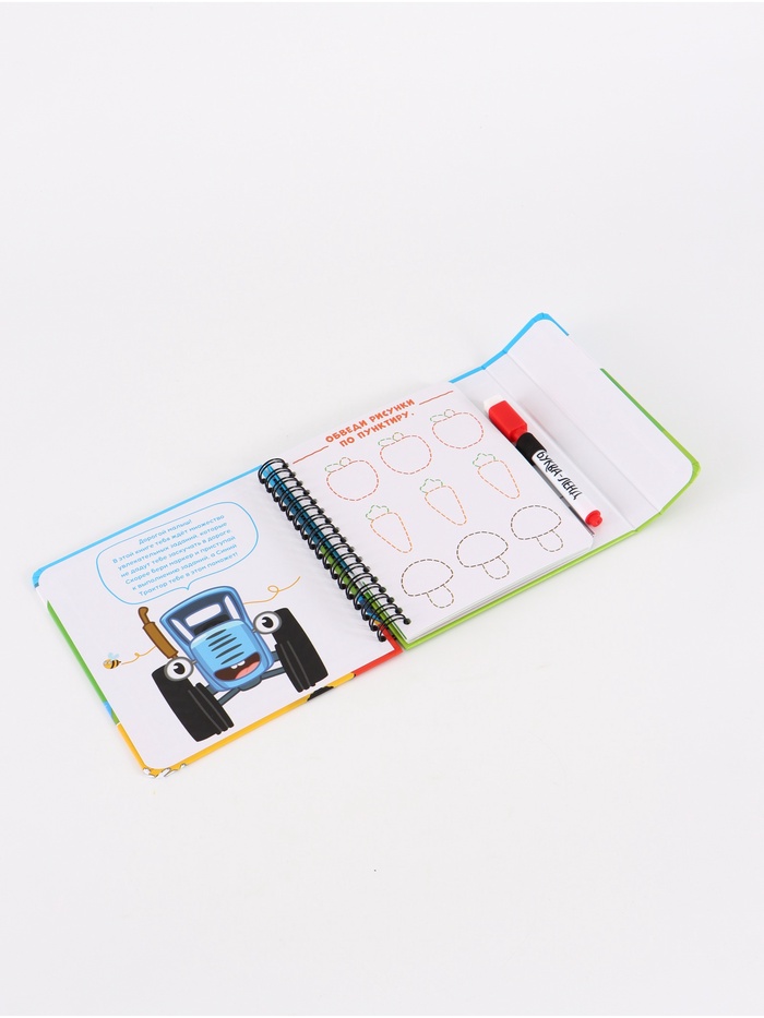 Многоразовая книга с играми, 30 мини-игр + маркер в комплекте, Синий трактор