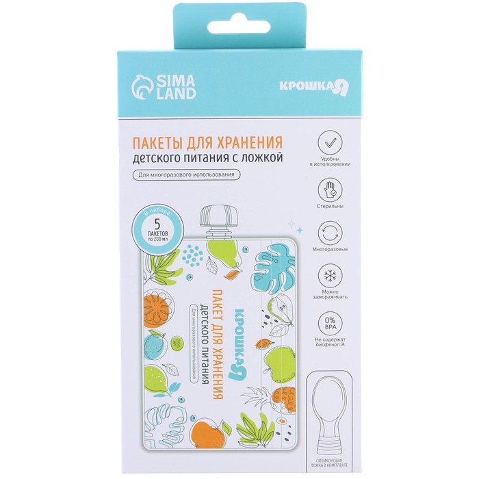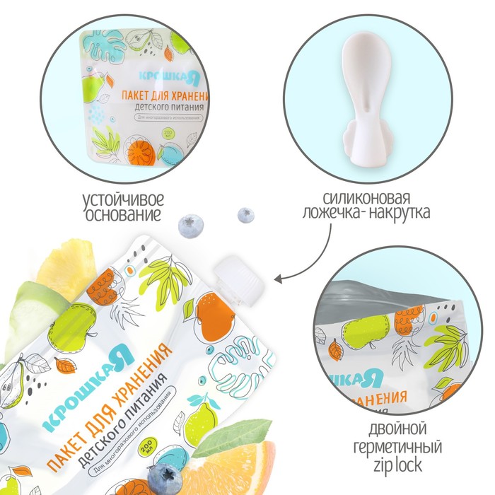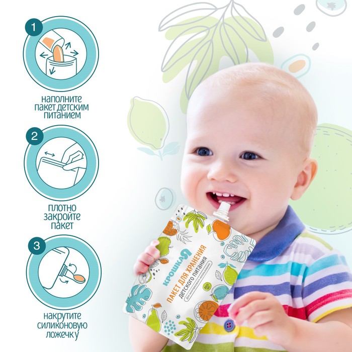 Пакеты для хранения детского питания - многоразовые пакеты для хранения детского питания (для детских смесей, пюре и каш) Food Pouch c крышками и ложкой выручат в дороге, на прогулке или в путешествии. Они сохраняют свежесть пищи, полностью безопасны для ребенка и подходят для кормления малыша вне дома прямо из пакета.