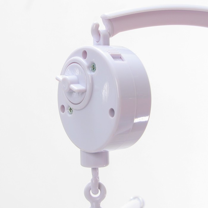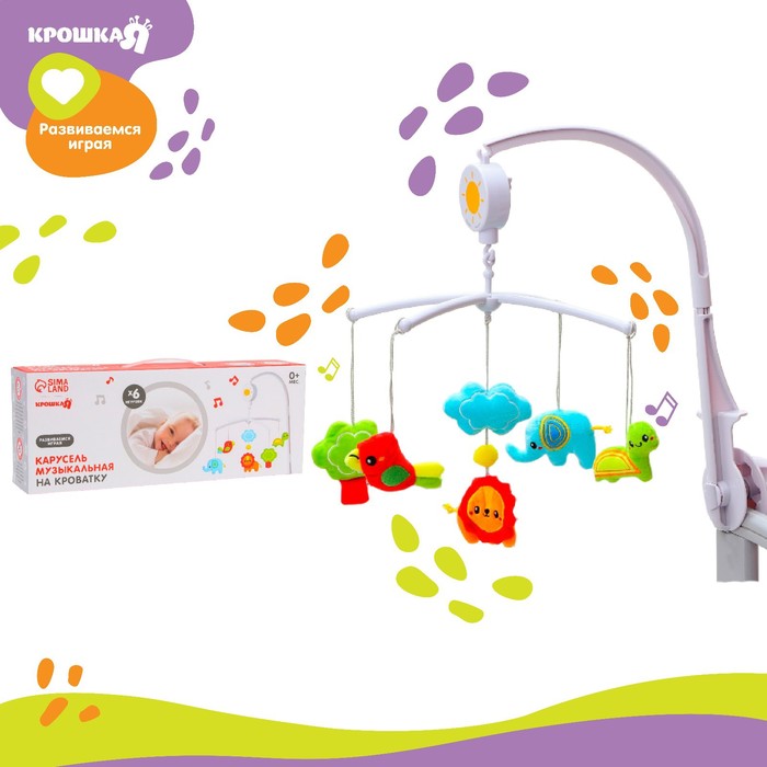- 5 ярких игрушек над кроваткой медленно крутятся, привлекая внимание ребёнка.