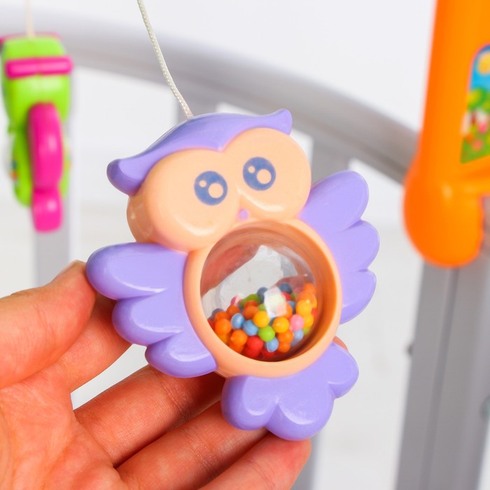 Вращающаяся музыкальная карусель поможет убаюкать малютку. Во время бодрствования грудничок будет с интересом наблюдать за движением весёлых фигурок, научится распознавать звуки, цвета и формы. Подросший малыш начнёт тянуться ручками к игрушкам: так ребёнок тренирует координацию движений и пробует оценивать расстояние до предметов.