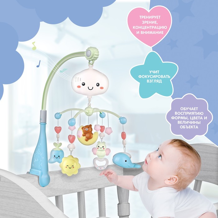 Музыкальный мобиль «Волшебные сны» привлечёт внимание трогательным дизайном и надолго займёт малыша благодаря множеству полезных функций. Игрушка не только развлечёт ребёнка — с ней можно осваивать новые навыки! Колыбельные песенки успокоят малыша и подготовят его ко сну.