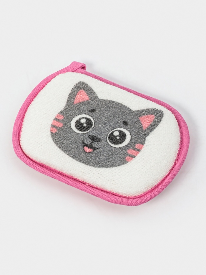 Мочалка для купания "Кошечка", 12х8 см, цвет розовый
