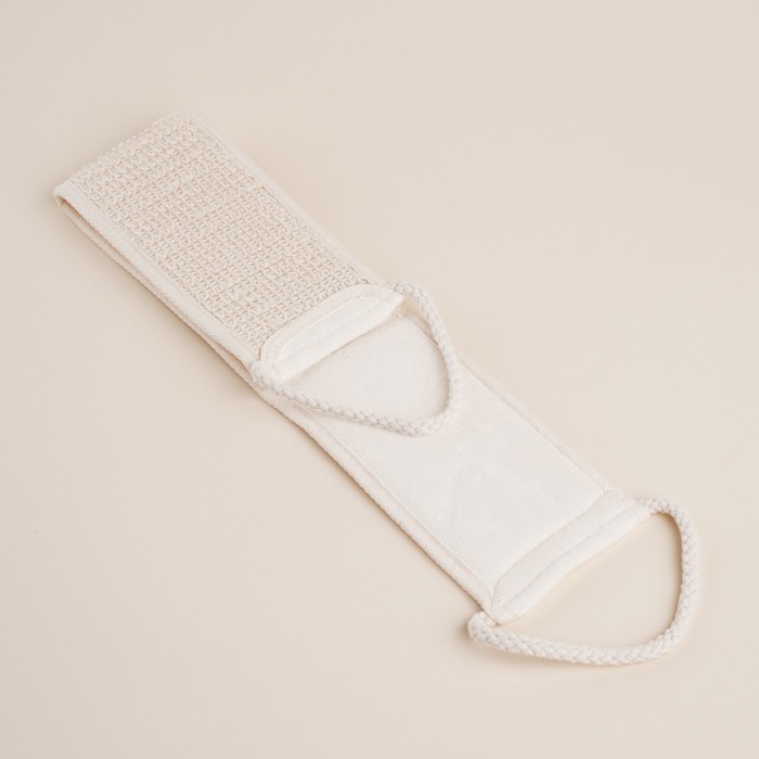 Мочалка выполнена из крапивы и хлопка — сочетания, которое деликатно очищает кожу, не вызывая раздражений, и одновременно обеспечивает легкий массажный эффект. Длина рабочей части в 60 см позволяет легко достать до всех участков тела, делая процесс мытья максимально удобным.