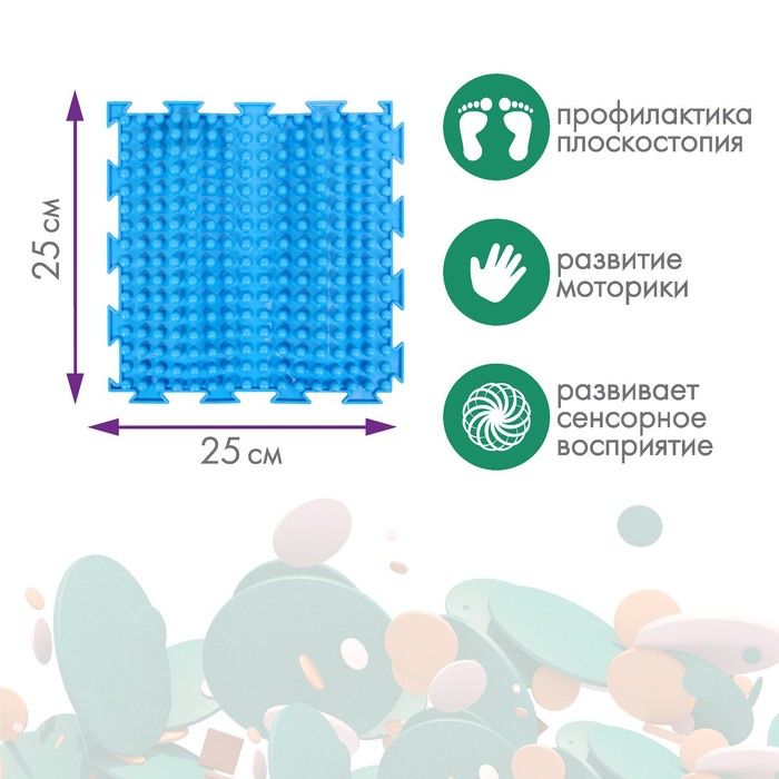 Ортопедическое напольное покрытие состоит из отдельных модулей, которые соединяются между собой по принципу пазла. По массажному коврику можно ходить или выполнять упражнения, стоя на нём. Во время занятий стимулируются рецепторы на стопе и формируются её физиологические своды. Изделие применяется для профилактики плоскостопия у детей, массажа стоп и снятия усталости ног.