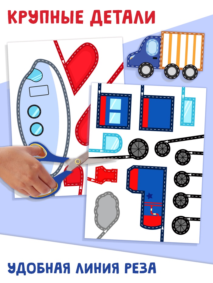 Книжка «Мои первые аппликации. Я изучаю транспорт» познакомит малыша с новым видом творчества. В книге 11 красочных картинок, которые ребёнок сможет «оживить» сам! Для этого нужно выбрать вариант фона — с подсказкой или без, аккуратно вырезать детали и приклеить их на картинку. Кропотливая работа развивает мелкую моторику и усидчивость, которые важны для повседневной жизни.