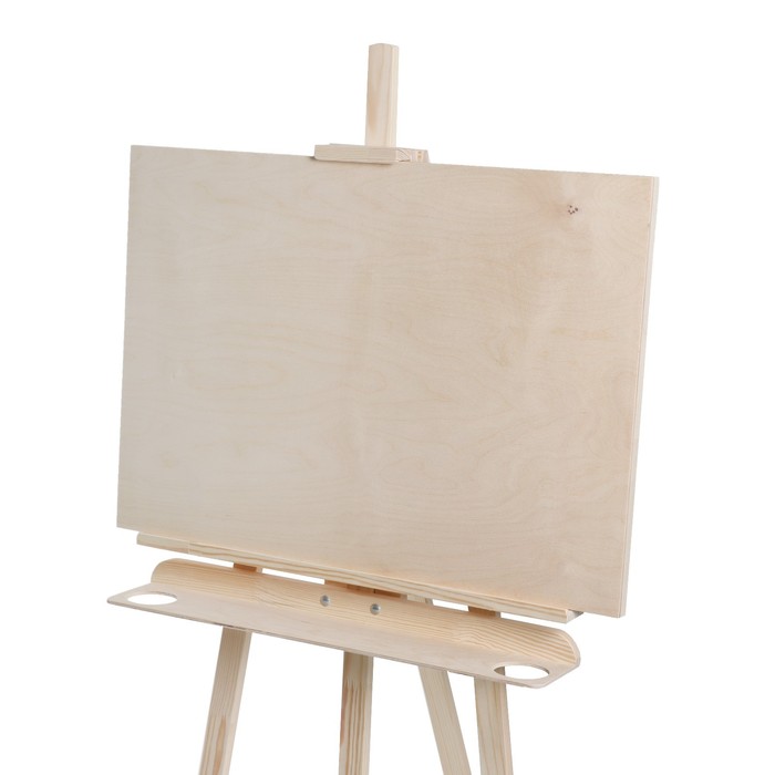 Классическая модель типа ""Лира"", предназначена для работы на подрамнике с холстом или на планшете (любые виды бумаг). Выполнен из натуральной высококачественной доски сосны. Угол наклона опорной ноги можно изменять, высота полки и фиксатора холста также регулируется. Экономичный вариант мольберта подходит для работы в студии, демонстрации картин, а так же как предмет интерьера. Дополнительно имеет отверстие для стакана.В комплект входит планшет.