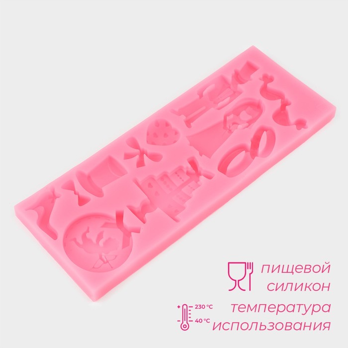 Молд «Свадебная атрибутика», силикон, 16×6×0.9 см, розовый