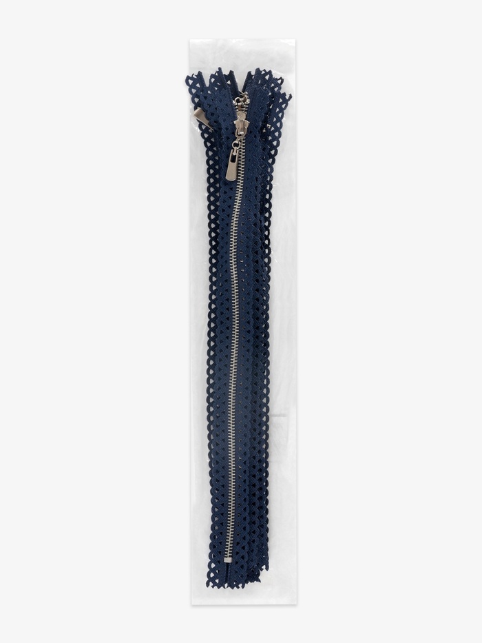 Молния металлическая, №3, неразъёмная, замок автомат, 30 см, тёмно-синяя