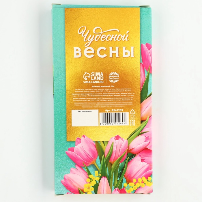 Состав: сахар, какао-масло, сухие молочные продукты, какао тёртое, какао-порошок, эмульгаторы (лецитин соевый – Е322, PGPR – Е476), ароматизатор пищевой «Ванилин». Содержание какао-продуктов: не менее 37 %.