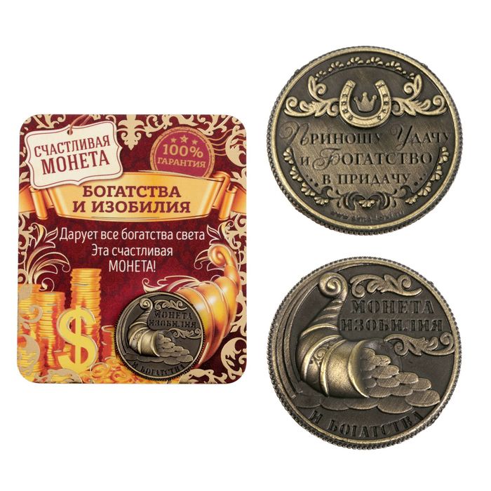 Чтобы всегда везло в денежных делах, монету можно положить в кошелёк – тогда он никогда не опустеет. Оригинальный сувенир и удачный подарок для каждого!