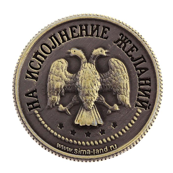 Монета сувенир «Приносящая удачу», d=2 см — мощный талисман на счастье! У неё есть 2 стороны: «орёл» — на исполнение самых заветных желаний, а «решка» — на счастье.