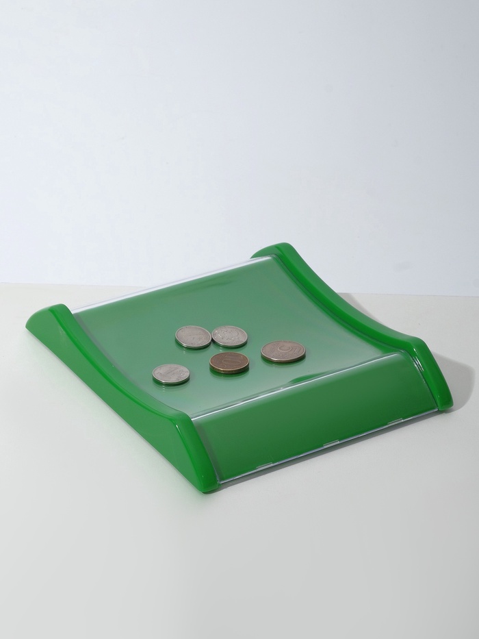 Двухкомпонентная монетница из пластика с местом для рекламной вставки — это практичное решение для хранения и организации мелких предметов. Размеры 19.3×16.3×2.5 см позволяют разместить её на столе, прилавке или в офисе, обеспечивая удобный доступ к монетам и мелочи. Яркий зеленый цвет делает изделие заметным и легко узнаваемым, а прочный пластик гарантирует долговечность и безопасность использования.
