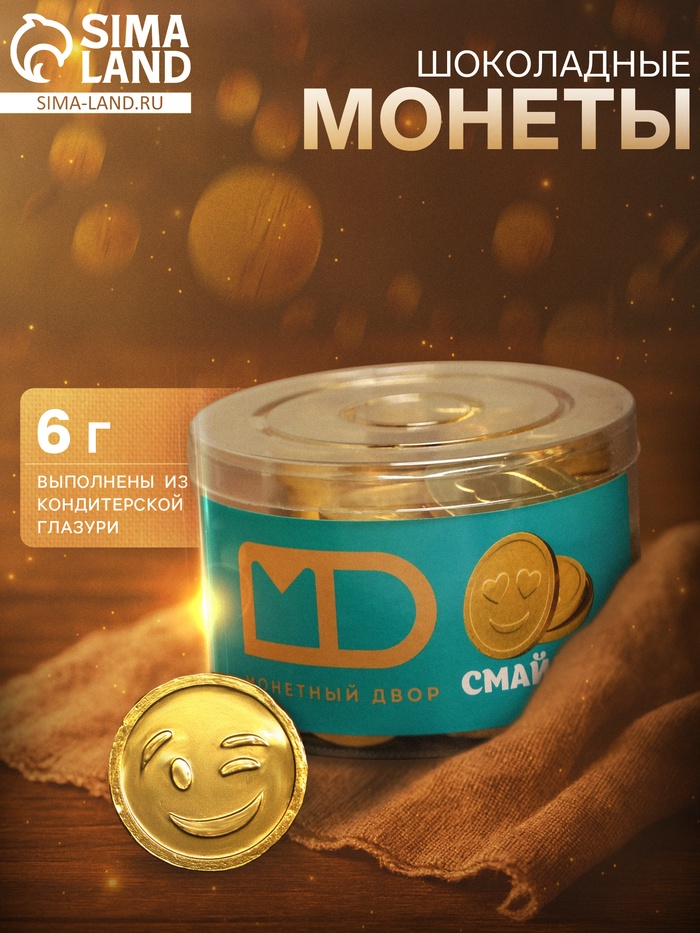Погрузитесь в мир сладостей с шоколадными монетами в банке «Смайлик» и позвольте каждому угощению стать символом радости и хорошего настроения!
