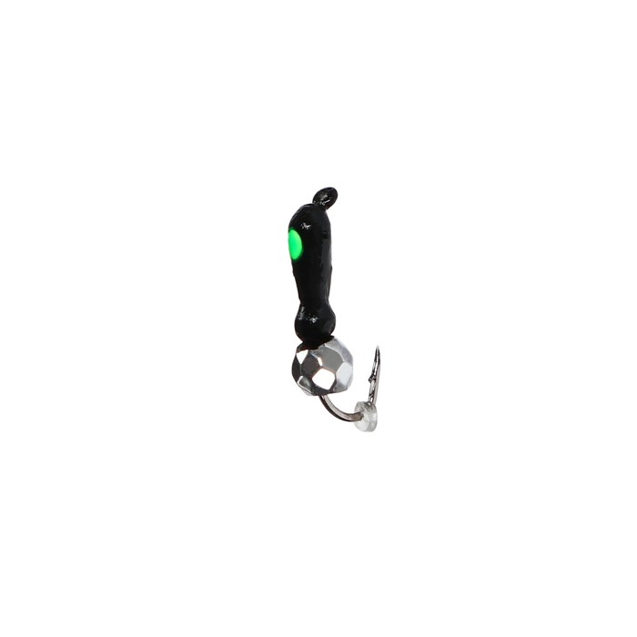Мормышка Муравей чёрный, зелёный глаз + шар гранен серебро, вес 0.3 г